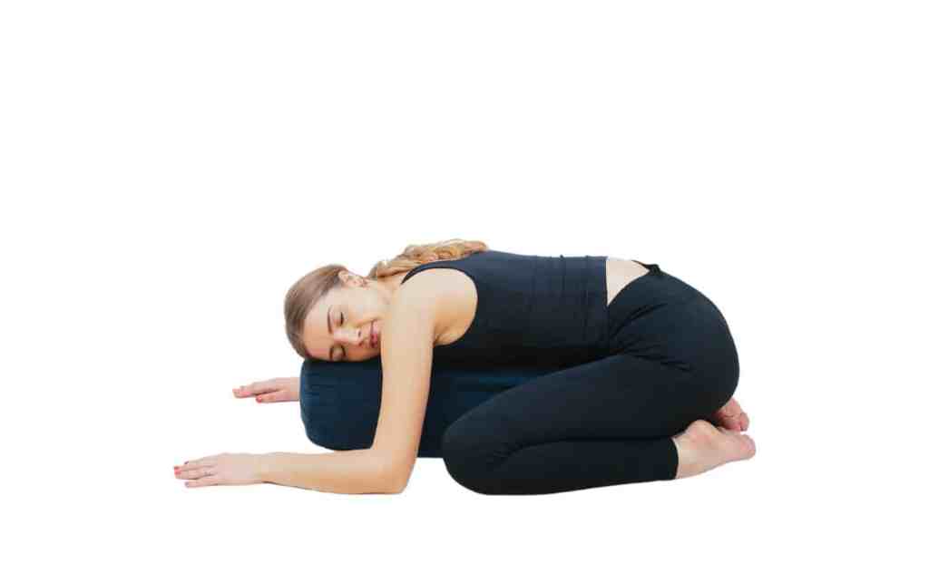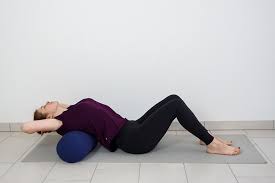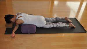 - Lie onto the bolster supporting your front body below your shoulder blades.
